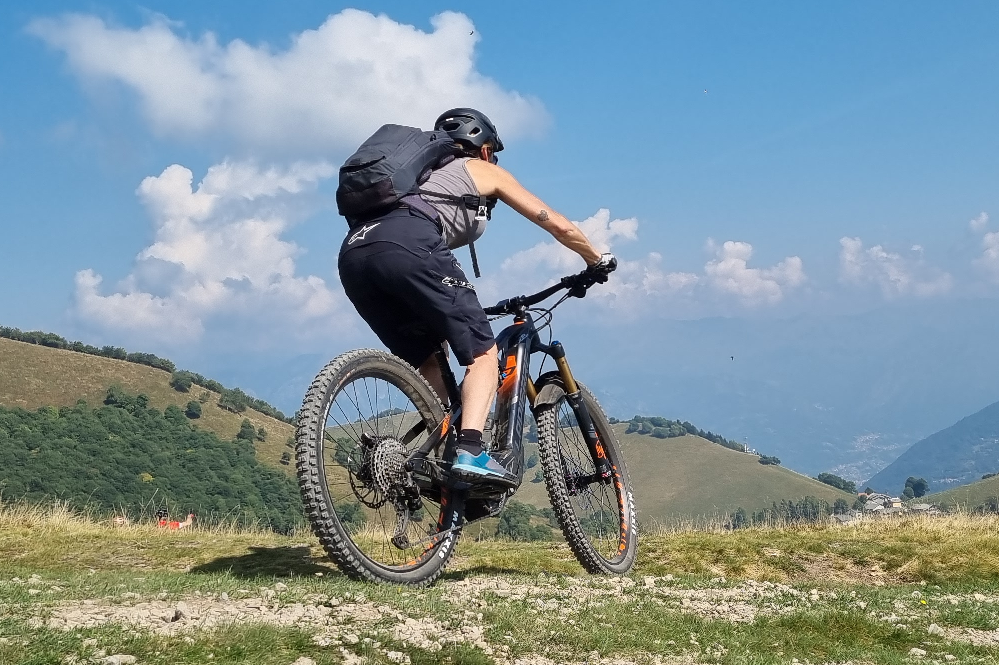 I sentieri sono in perfetto stato ed il panorama è mozzafiato. La salita è fattibile tutta in sella con una e-MTB.